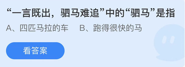 支付宝蚂蚁庄园小课堂4月28日的其中一个问题是:“一言既出,驷马难追”中的“驷马”是指?这道题考查了驷马难追的知识,下面一起来看一下蚂蚁庄园4月28日的正确答案吧。