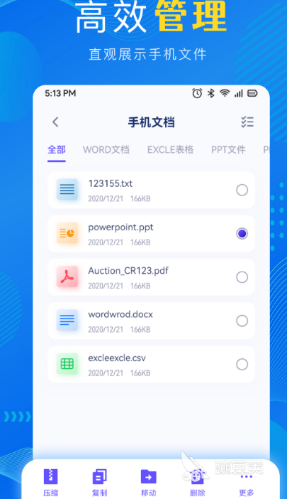 该应用是针对手机当中各种内容进行管理的,包括比较常见的图片照片,同时还有视频、音频以及文档等,即使自己在工作领域当中需要使用文档的话,都可使用这款应用。可提升自己在办公室的工作效率,也能对手机当中的文件进行分类,识别文件的不同格式,不管自己的办公文档是什么样的格式,都可利用这款软件进行管理。