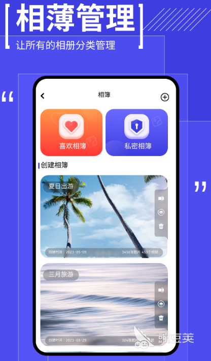 手机相册里每个人都会储藏很多的照片,该应用就是能对相册进行管理的,如果不想让自己做拍摄的照片被删除或者是被其他人看到的话,可利用软件来帮助储存,更能记录美好的回忆,给用户提供丰富的管理功能。还具有强大的编辑功能,不管是图片还是视频等,都能利用软件来完成编辑,让自己编辑完成的图片视频更加生动有趣。