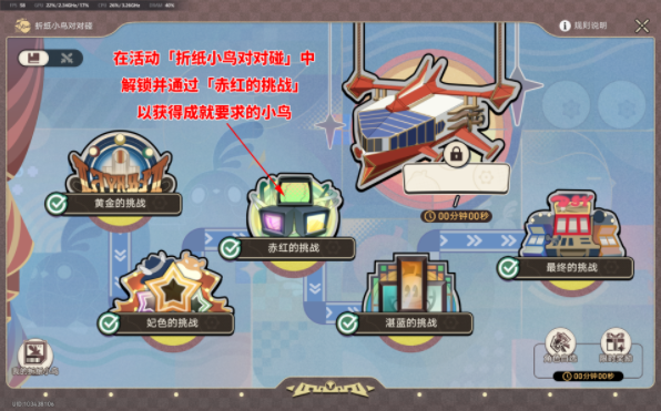 成就描述:「折纸小鸟对对碰」活动中,将开拓小鸟与三月小鸟放在相邻街机上。
