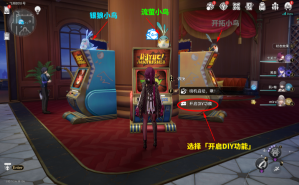 2、之后要在任意一侧,靠近街机选择「开启DIY功能」;