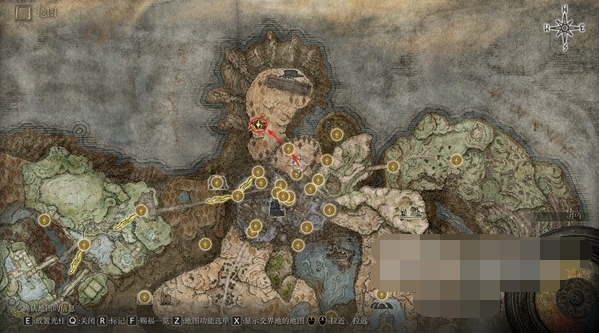 3、从【幽影城(后门)】开始往地图上面走,遭遇追忆BOSS之一【老将盖乌斯】并点亮第二个赐福【望影露台】,最后从旁边的门进入左上区域往白金的破屋位置走。