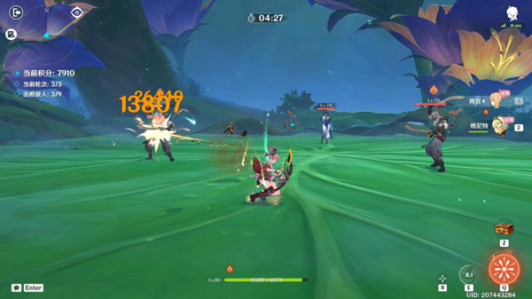 2、再去打镀金旅团,班尼特放QE技,宵宫放QEAAA技。